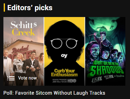These two polls are both really good! I think your idea about dividing them according to laugh tracks really worked well. Bravo! : )