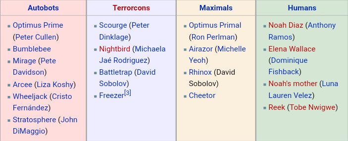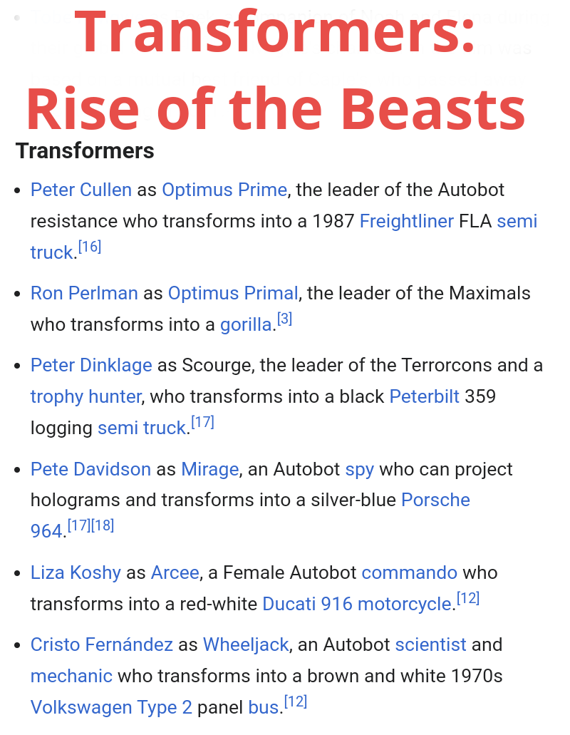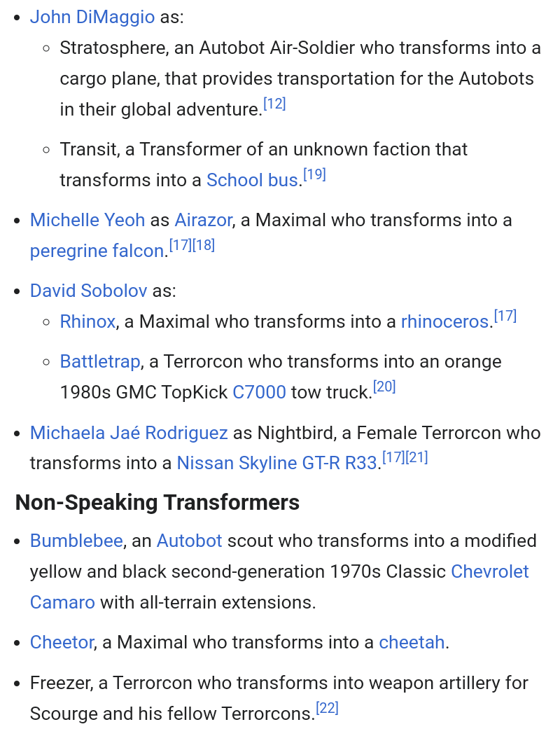 (Bumblebee cast credits courtesy of Transformers Wikia)