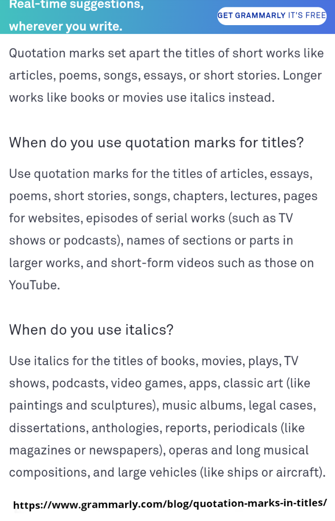 Oh, to tell the difference between newspapers and book titles, books get the quotation marks - newspapers don’t.