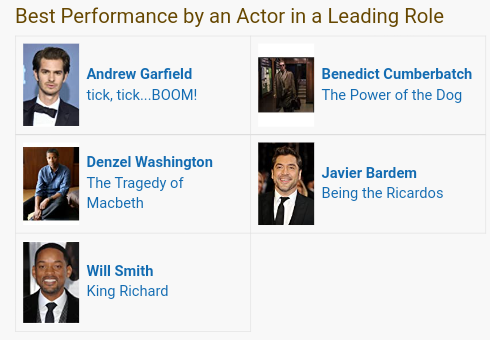 2022 Oscar Best Leading Actor Nominees