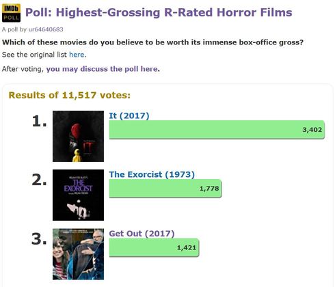 13 October 2017: Highest-Grossing R-Rated Horror Films - http://www.imdb.com/poll/yLyP6GnCshs/ (A poll by pere-25366)