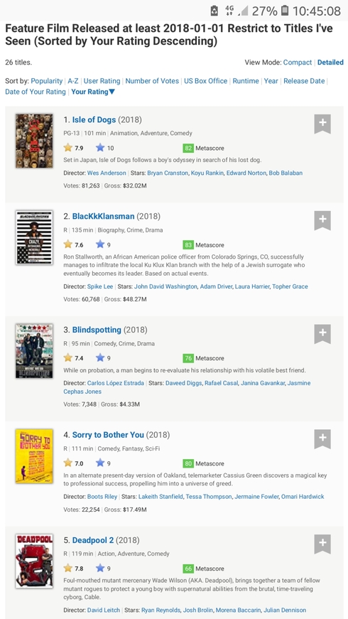Each user below has selected their own five favorite movies of 2018. Which list do you personally agree with the most?