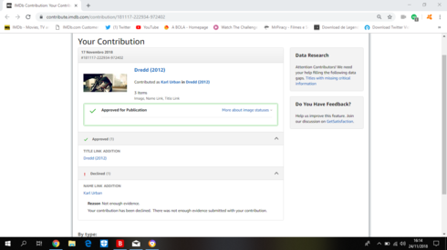 Black Rain, The Place Beyond the Pine, Dredd, Matrix, Venom and X-Men Origins: Wolverine.