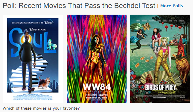 Which of these recently released (2020 - March 2021) top movies that pass the Bechdel Test do you like the most?