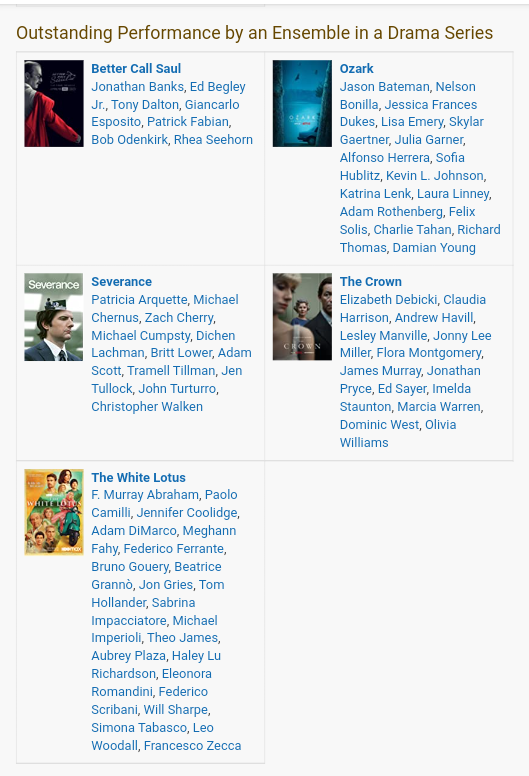 Which of the 2023 Screen Actors Guild Award nominees for 'Outstanding Performance by an Ensemble in a Drama Series' is the most deserving of this collaborative SAG award? *answer pool is limited to casts of 2022 U.S. primetime broadcasted television or streaming platform dramatic scripted episodic series only