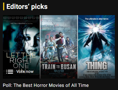 Congratulations BonaFideBOSS. This is the 13th time your poll has been featured at IMDb Home Page (http://www.imdb.com) since July 28, 2015.