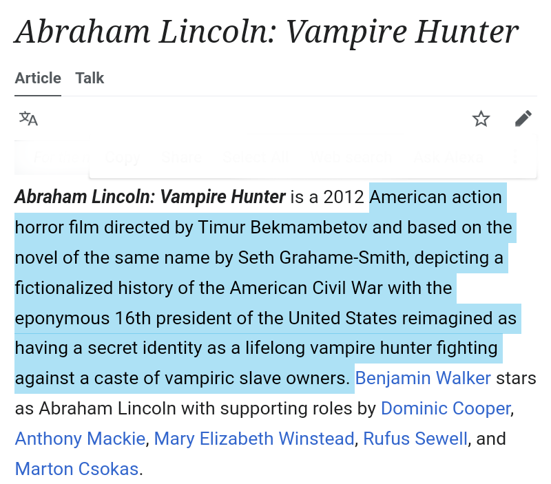 Abraham Lincoln: Vampire Hunter?