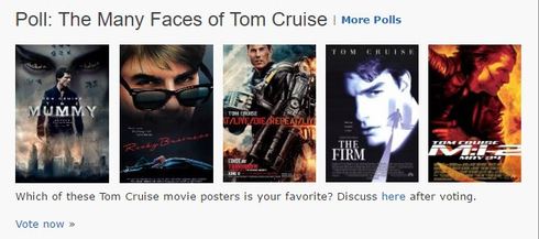 20 June 2017: The Many Faces of Tom Cruise - http://www.imdb.com/poll/yE4n16XrDYE/ (A poll by penchofifteenpolls)