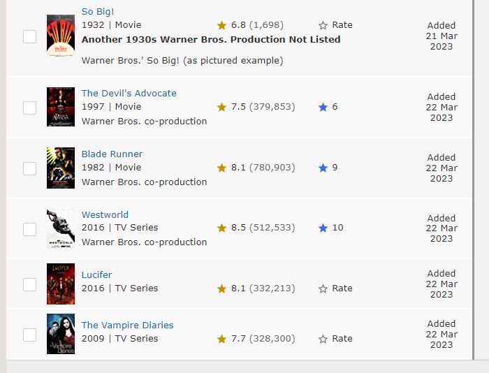 @Tsarstepan​ I did add them after and they are equally part of the Warner Bros. production family. They were only visiting and now reside in their permanent decade appropriate TV and movie lists.