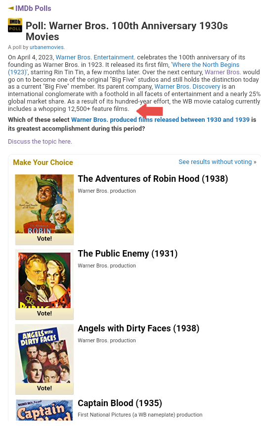 LIVE POLL: Warner Bros. 100th Anniversary 1930s Movies