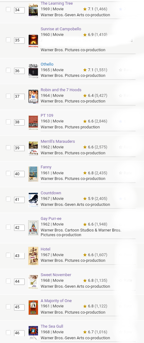 Sources: All Movie, AFI Catalog, Turner Classic Movies DB, IMDb.com and Wikipedia