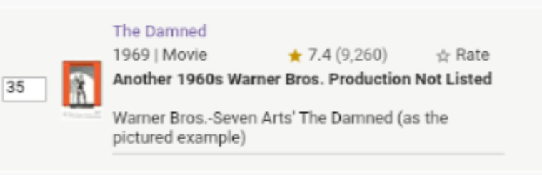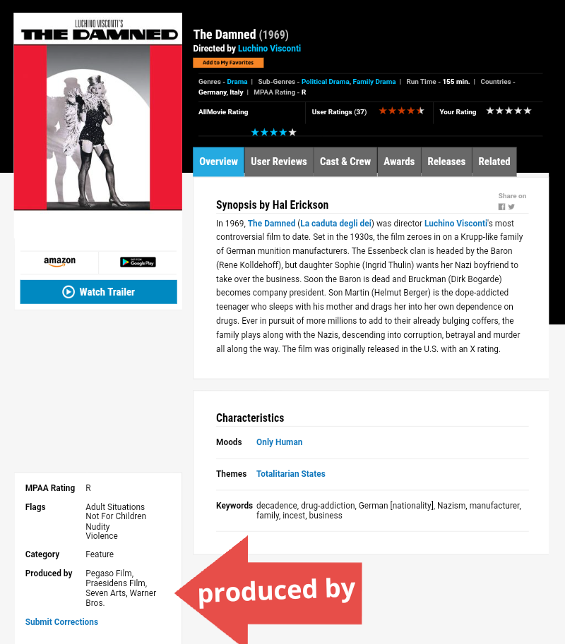 Regarding The Damned (1969), I think it might be distributed by rather than produced by WB.