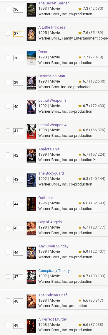 ​​​​​​​​​​​​​​​​​​Part 8: Warner Bros. 1990s Movies​​​​​​​​​​​​​