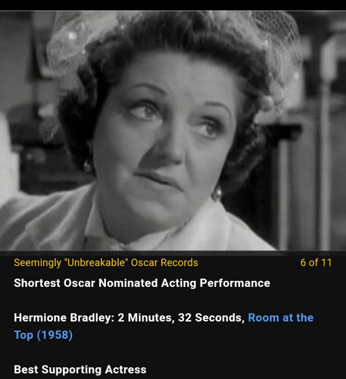 If she had won the Oscar, her acceptance speech likely would have been longer than her Oscar winning performance @ two and half minutes.