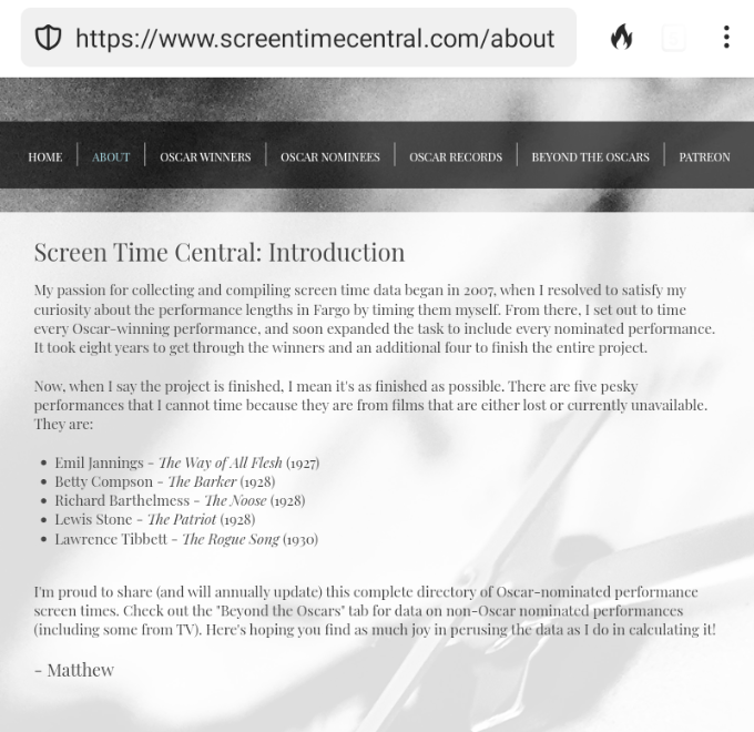 FYC, I noticed that one Oscar winning screentime has yet to be verified.