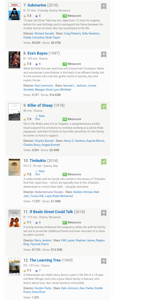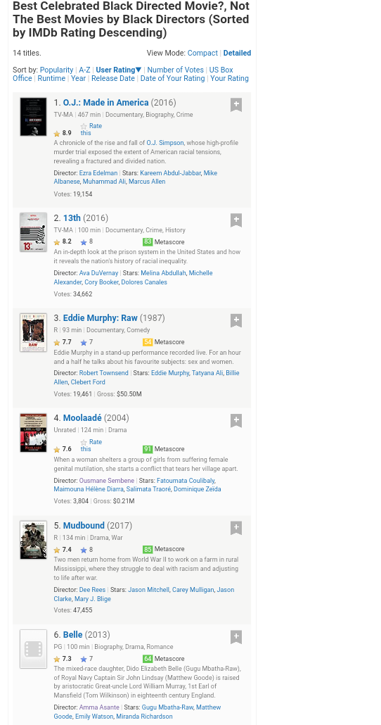 Poll Suggestion: Top Rated Movies by Black Directors