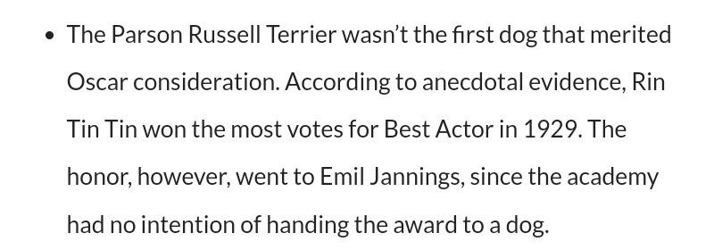 Fyi, I can't believe they robbed Rin Tin Tin of the Best Oscar Oscar in 1929.