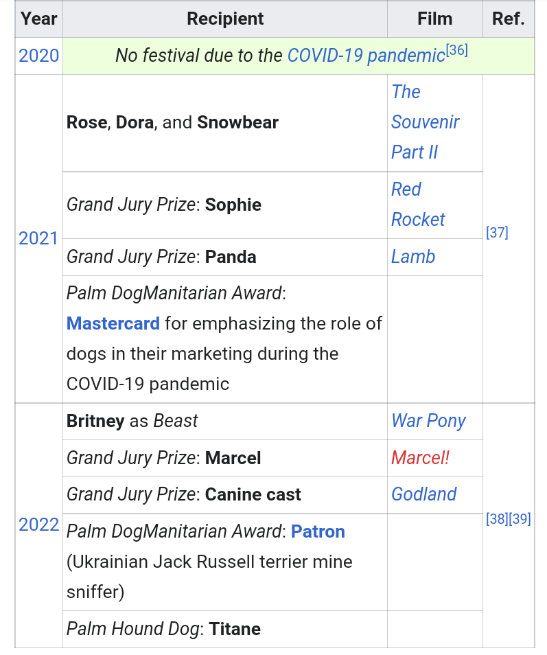Suggestion: Winners of the Palm Dog Award