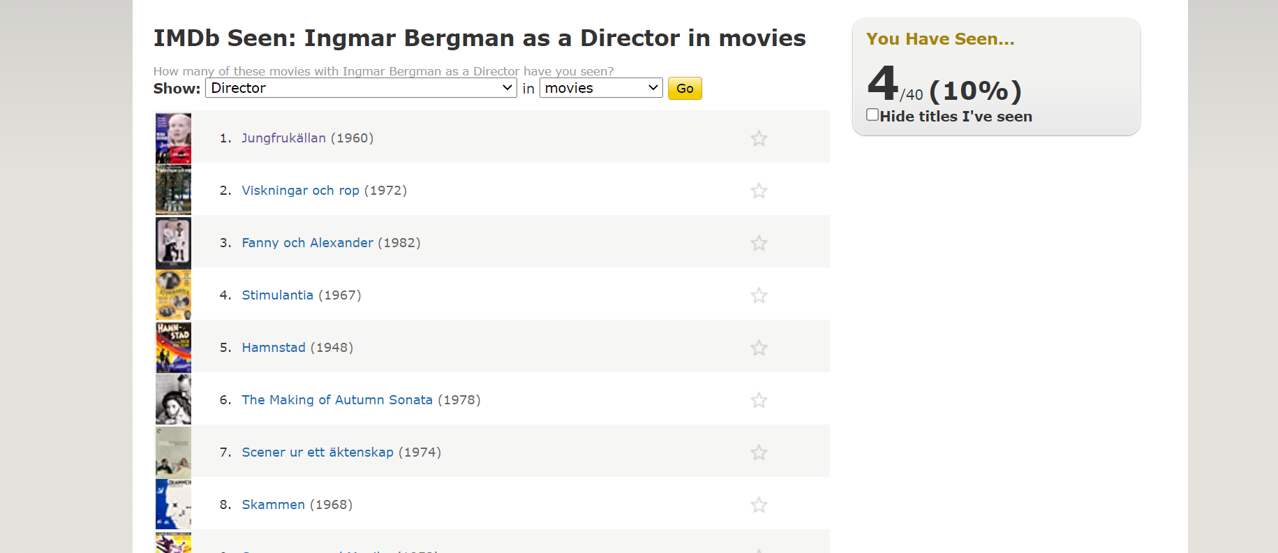 Simply by curiosity, how is sorted the "IMDb seen page. Example: https://www.imdb.com/seen/nm0000005-director-movie/