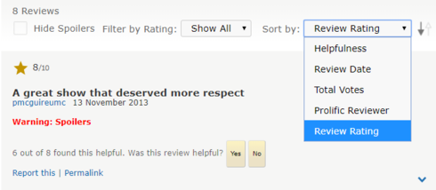 We can already vote Reviews as Helpful or Not, and sort the reviews by their Helpfulness score, as well as 4 other criteria shown below: