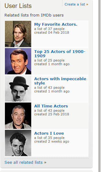 On the desktop site, you should see User Lists of People offered on many Name pages (scroll down, on the right):