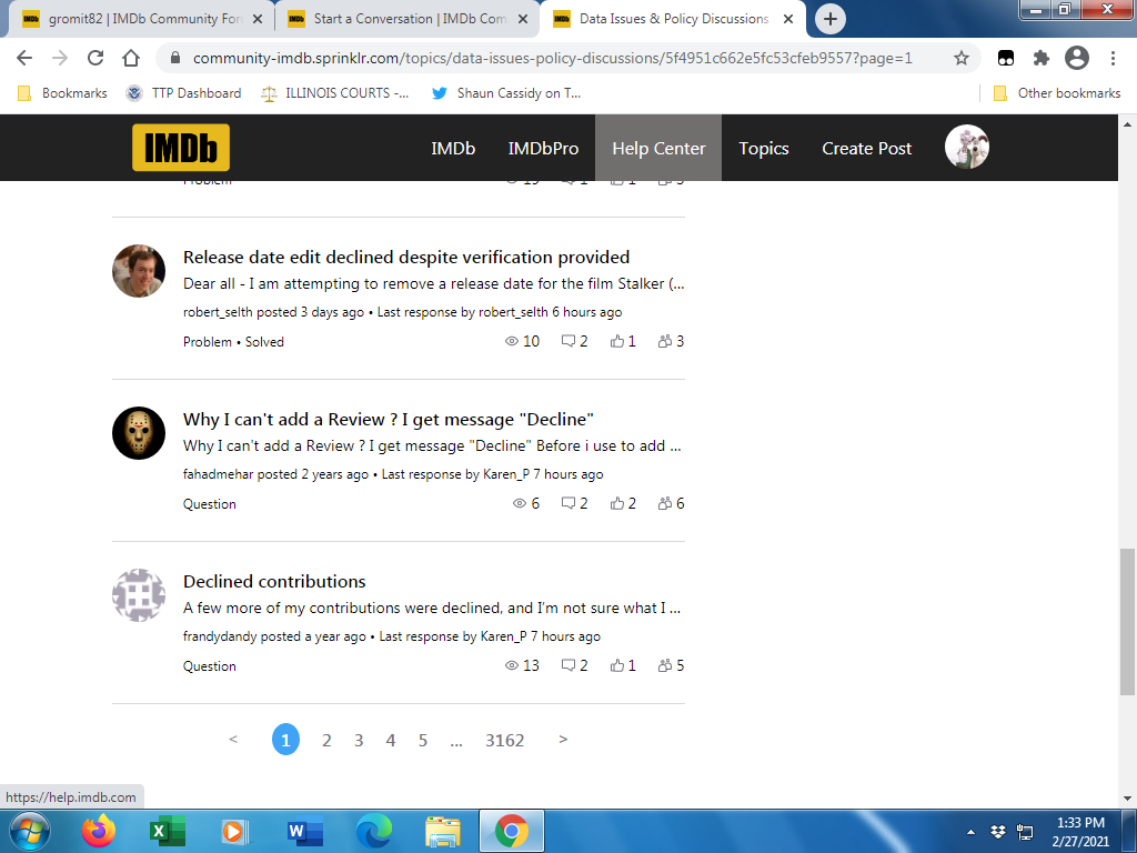 Why would they do this? Does anyone actually like the "Load More..." function better or find it easier to use? Considering that they have page-by-page navigation in the topics, I would think they would use it everywhere on the site. Could the IMDb staff please request Sprinklr to implement page-by-page navigation everywhere?