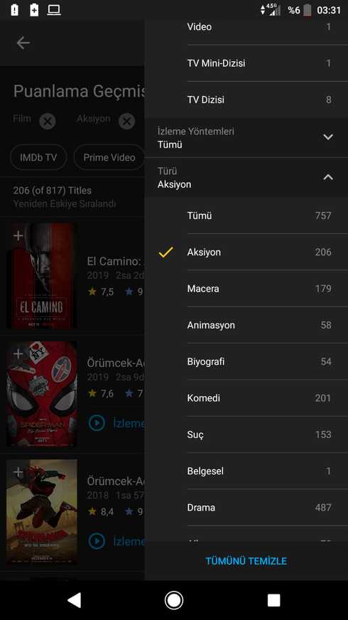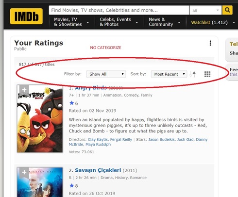 In mobile application we can view our ratings history by categorizing as their sort or genre. So it's easier way to find a movie that already rated by user. But this option doesnt exist on Pc/browser mode. We can't categorize our rating history. We can just sort them by top rated or most recent. IT'S BS! It's too difficult when I am trying to find a movie that I've already rated and dont remember the name of. Please make a refine tool like in the Watchlist page! Sorry for my English.