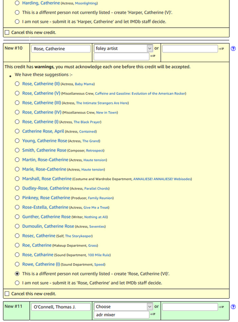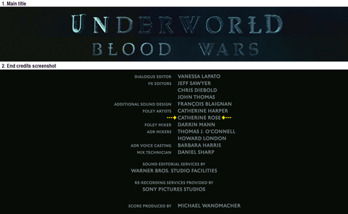 Here's my latest experience, a few minutes ago, when I was trying to add some Catherine Rose as a foley artist to the Sound department of Underworld: Blood Wars (2016):