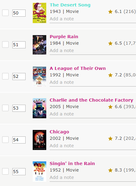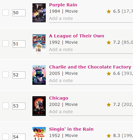 At old times like 2 or 3 years ago from this day, there was a really good thing in lists... With that cool thing you were able to change the title row by just sliding that title up or down. That cool thing is gone and I don't think it will come back... But I think If I ask to you to put that cool thing to the list editor all of the active IMDb users will be happy for that update and I hope you will add this slide thing. Changing the row of titles are so hard without that sliding thing, I have a list that list has 100 titles. If I add a movie to 1st row then I need to change all rows. Or even I put a movie in 50th row then I need to change the rows of 50 title one by one. That is so hard and time waste for this simple thing.