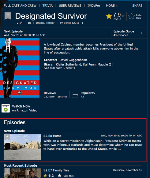 When I want to check out a new show, I first look it up on IMDB. But after I've done that, I almost always have to look it up on Wikipedia so that I know which network the show will air on. Sometimes a show won't even have a Wikipedia page, in which case, I have to start doing Google searches for articles, hoping to find one that will tell me where to find the show.