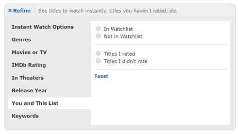 2. The refine menu for lists now includes an On TV option. Why doesn't the Watchlist, where it would be a lot more useful, have this? At the moment those listings aren't accurate and there doesn't seem to be a way to change your TV service provider.